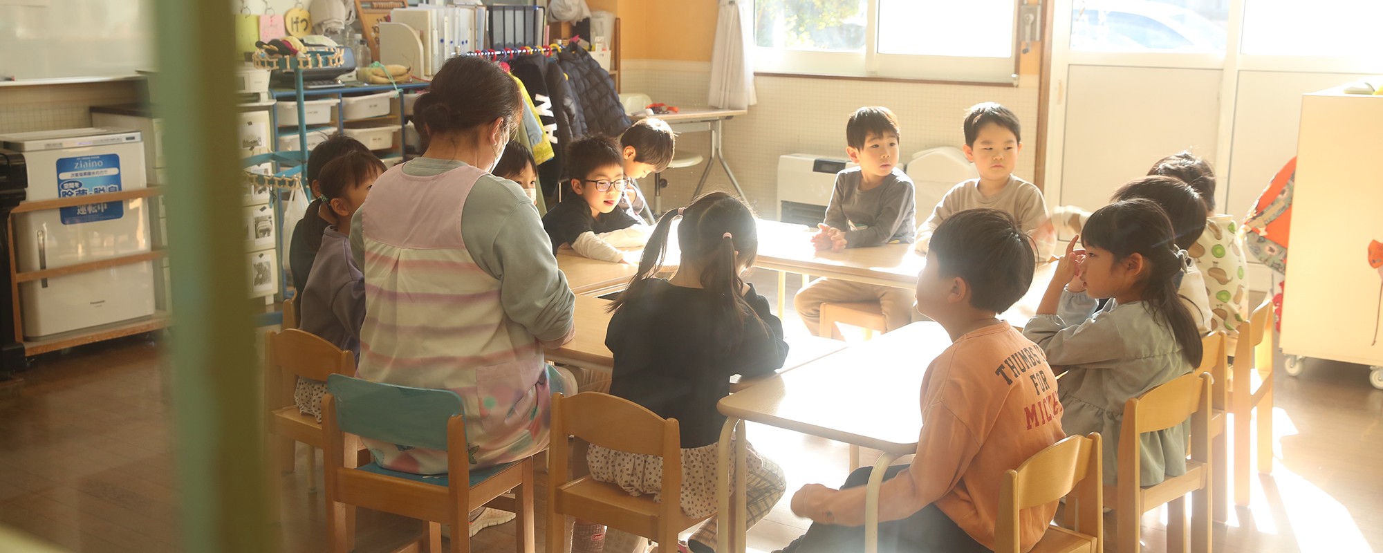 子どもたちが自由に気持ちを話し、保育者はそれをサポートします。